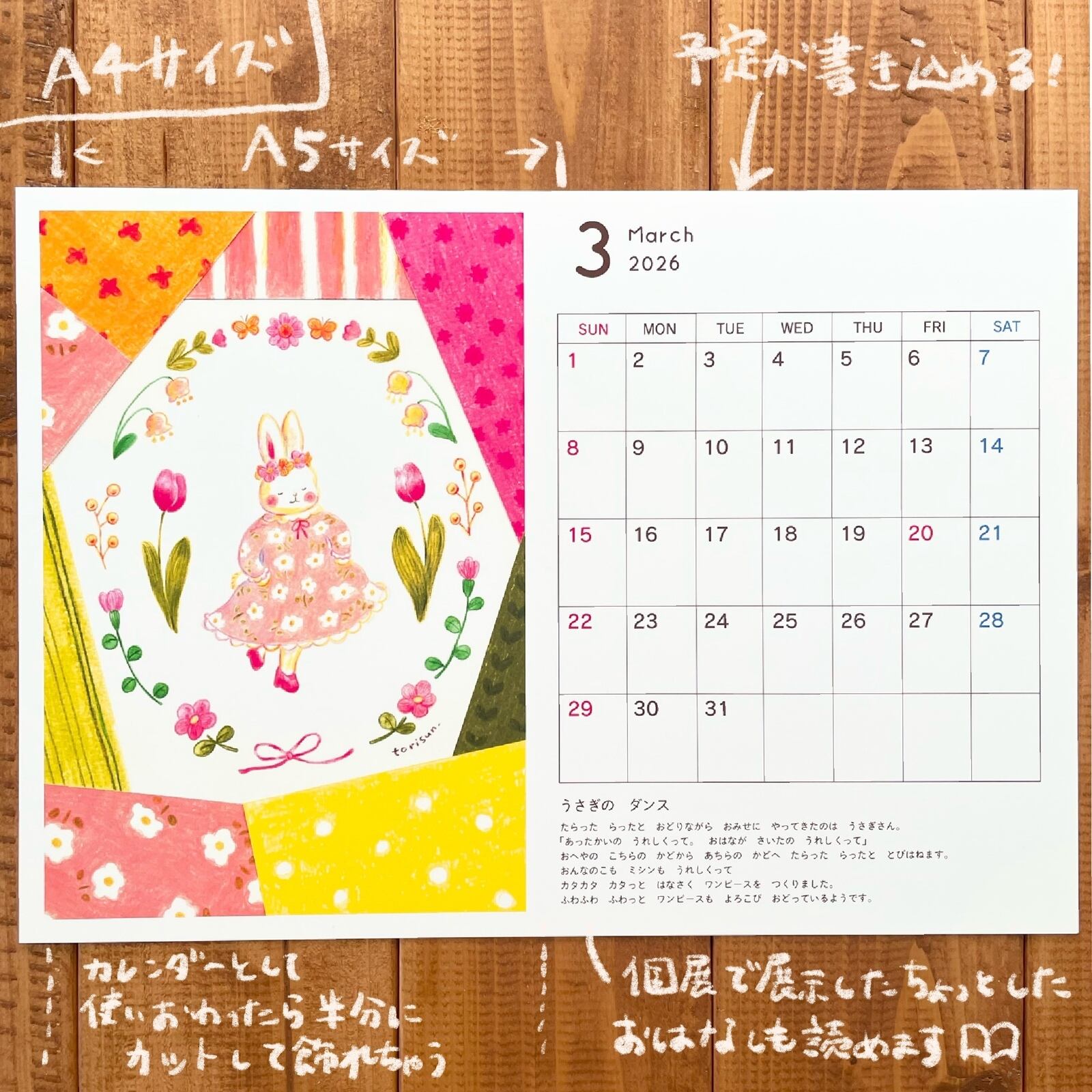 カレンダーとして使用後は半分にカットするとちょうどA5サイズになります。