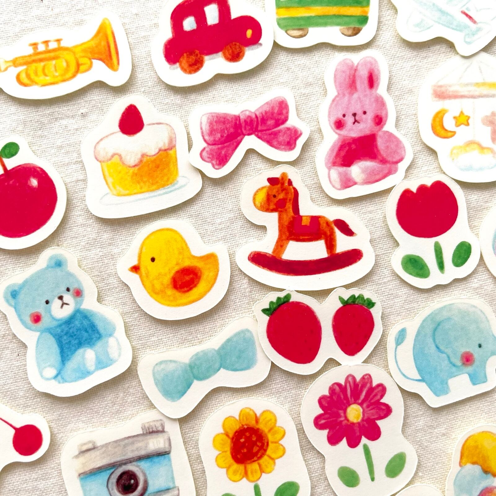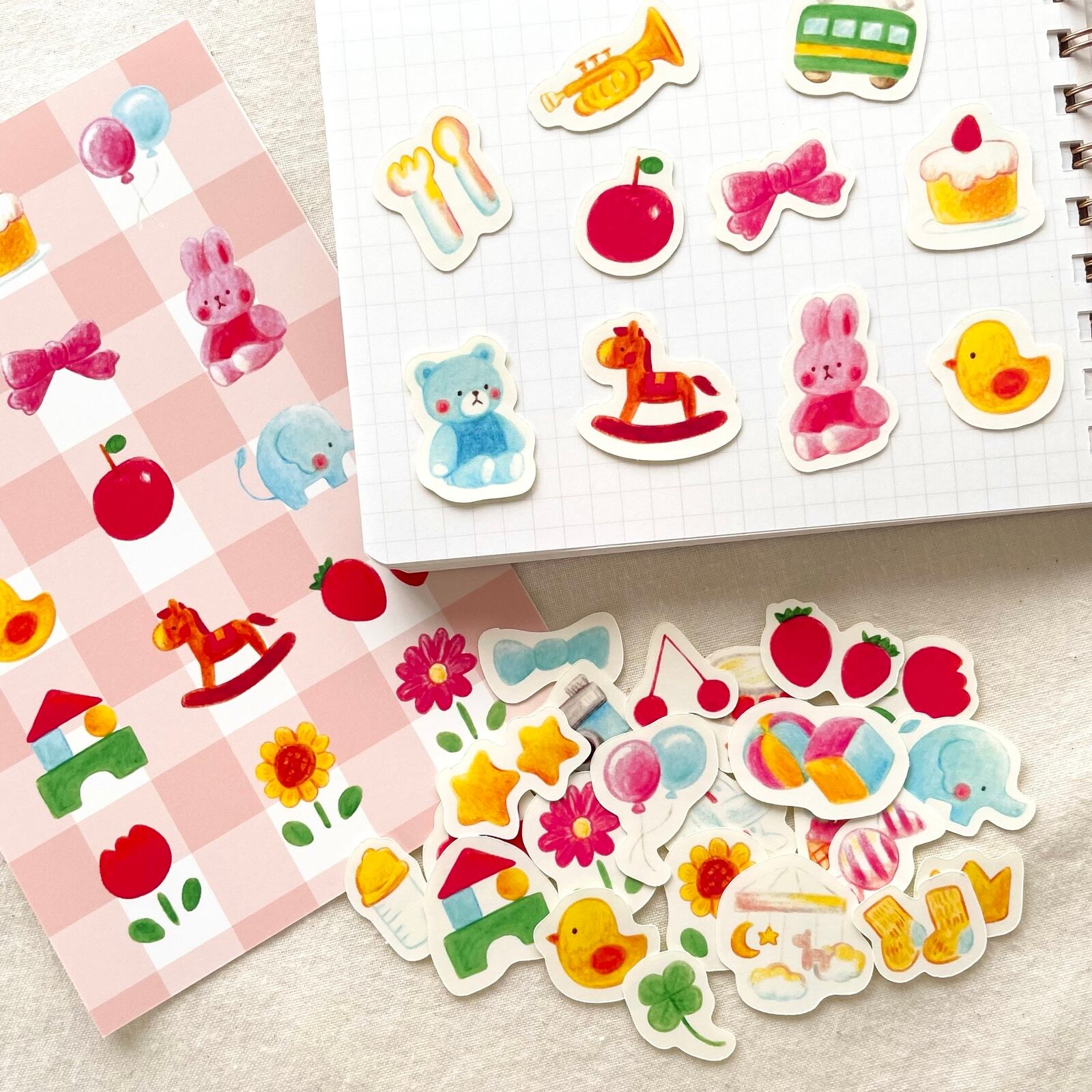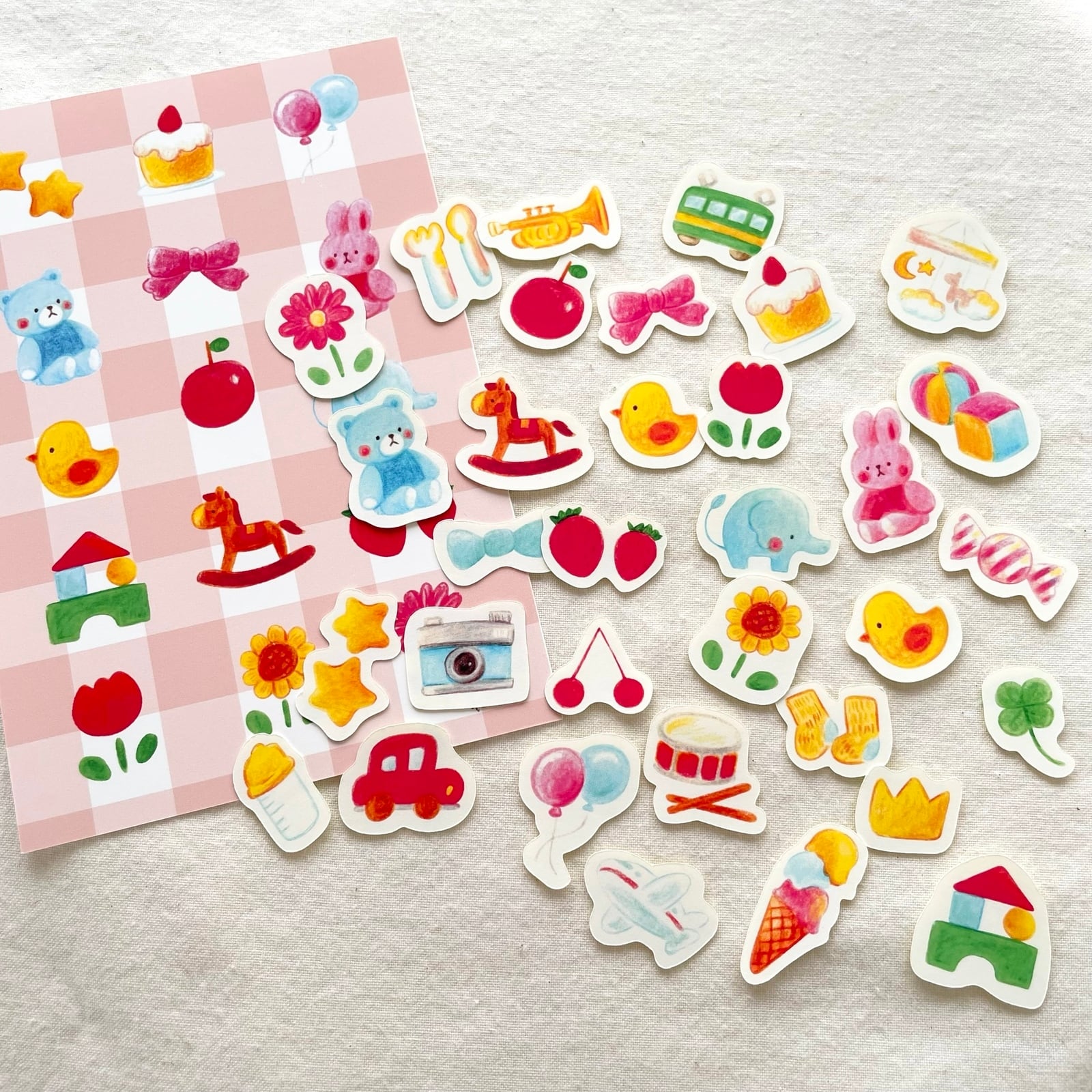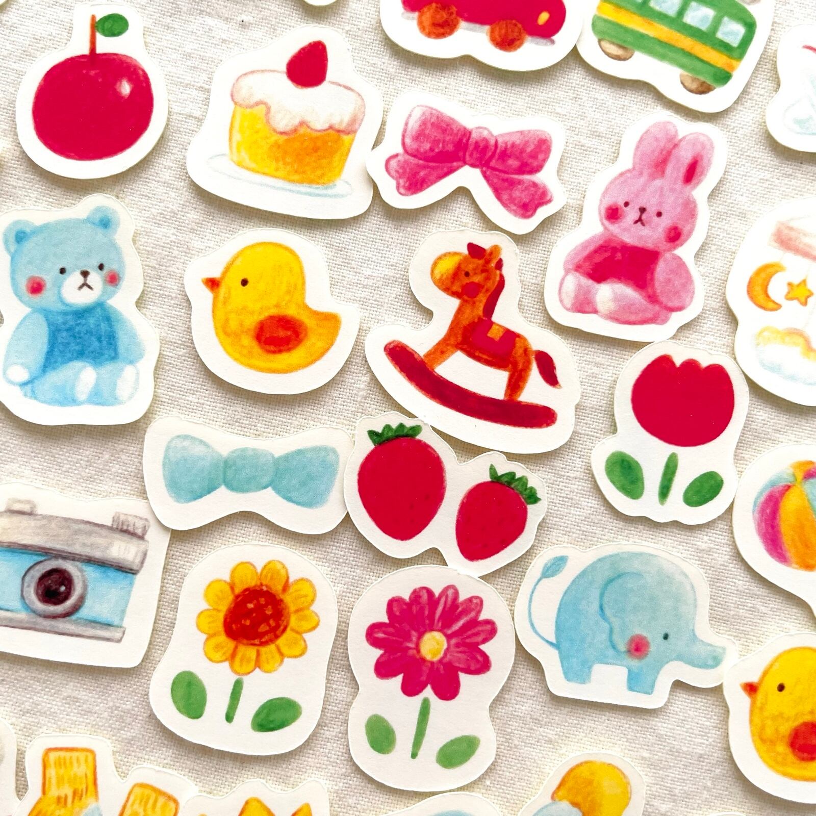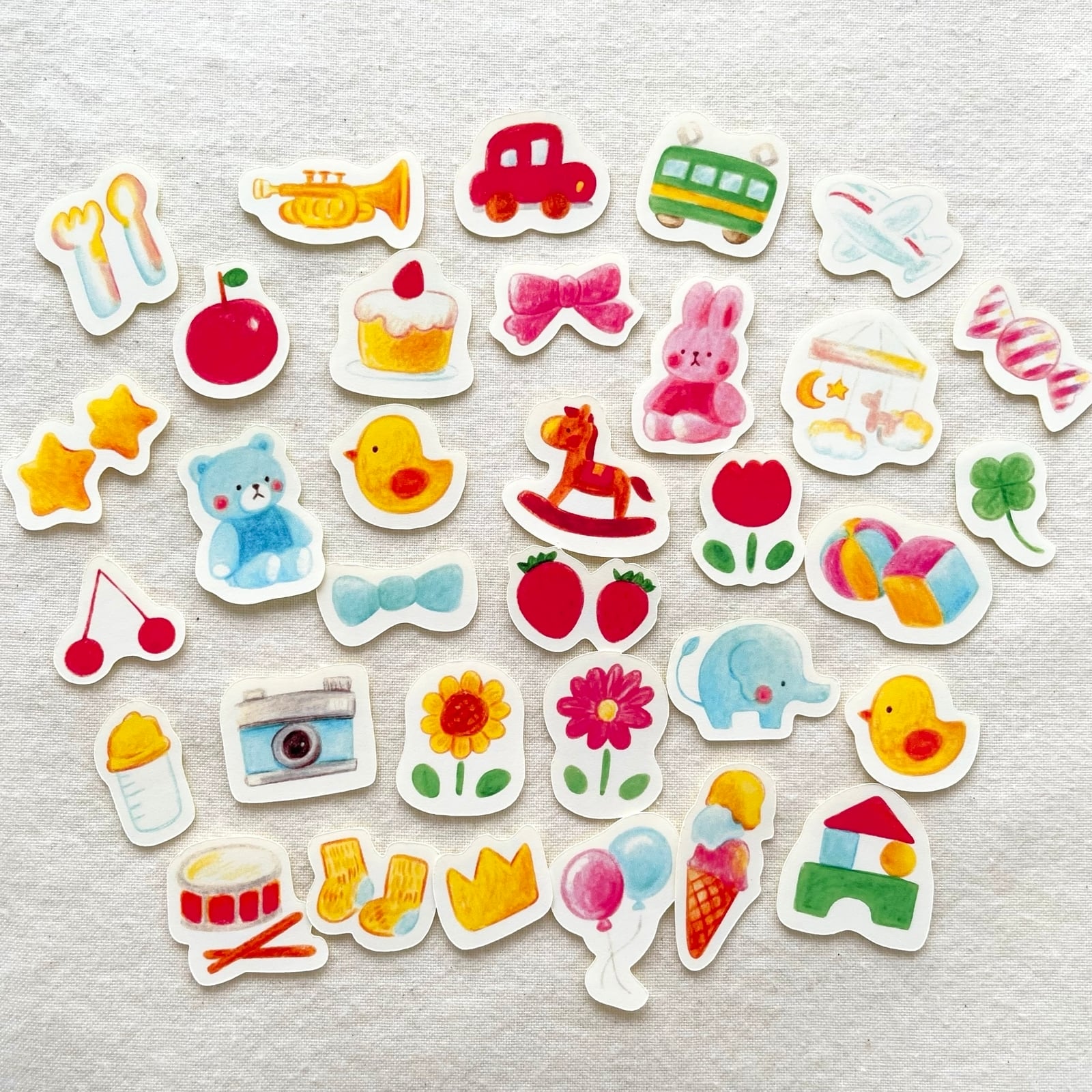 赤ちゃんの写真の飾り付けに。成長記録のコラージュに。お手紙の封に。子どもとペタペタ遊んでも楽しいかも。