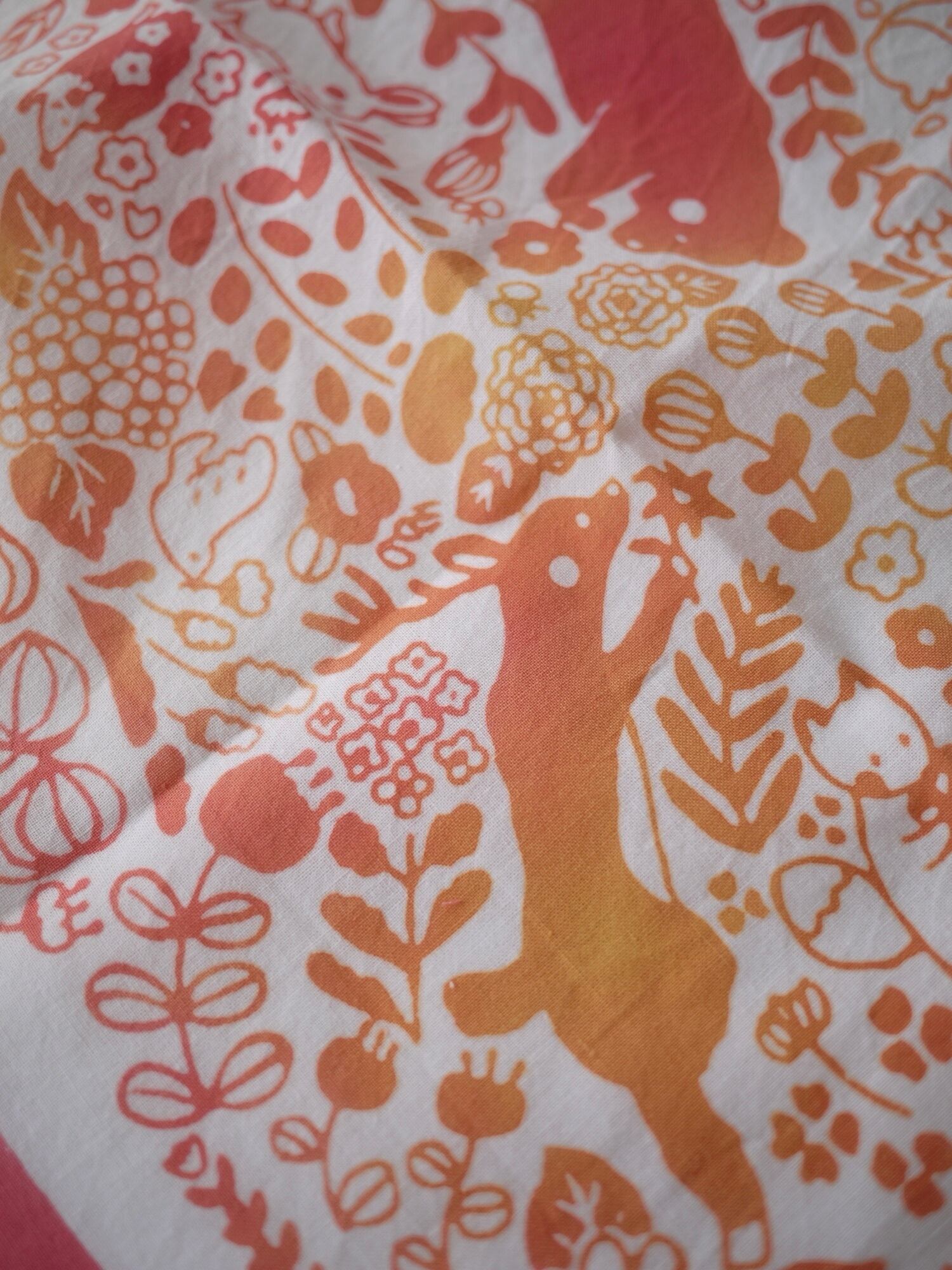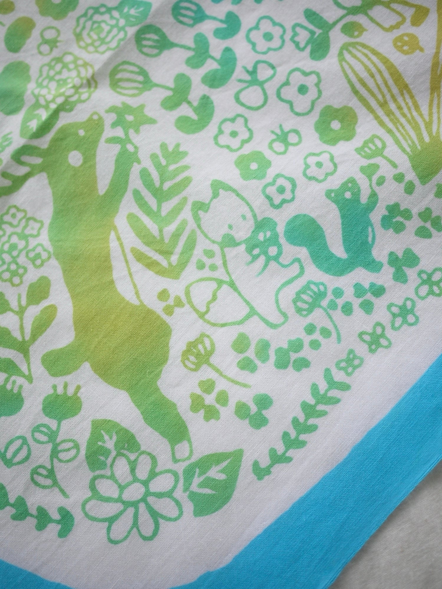 お花とどうぶつたちをあしらったほっこり可愛いぬぐいハンカチです。