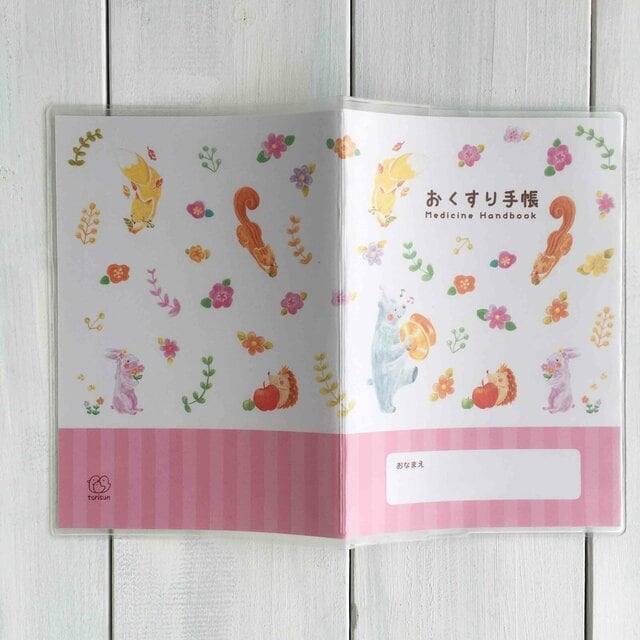 ・どうぶつたちのイラストお薬手帳カバーに、保護透明カバー付き