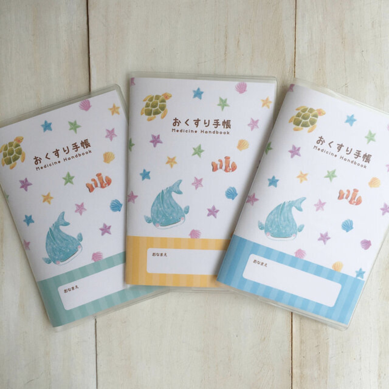 夏の時期に使いたくなる海のなかまたちのお薬手帳カバーです。