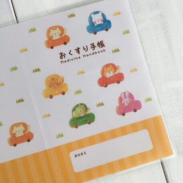 ・どうぶつたちのイラストお薬手帳カバーに、保護透明カバー付き