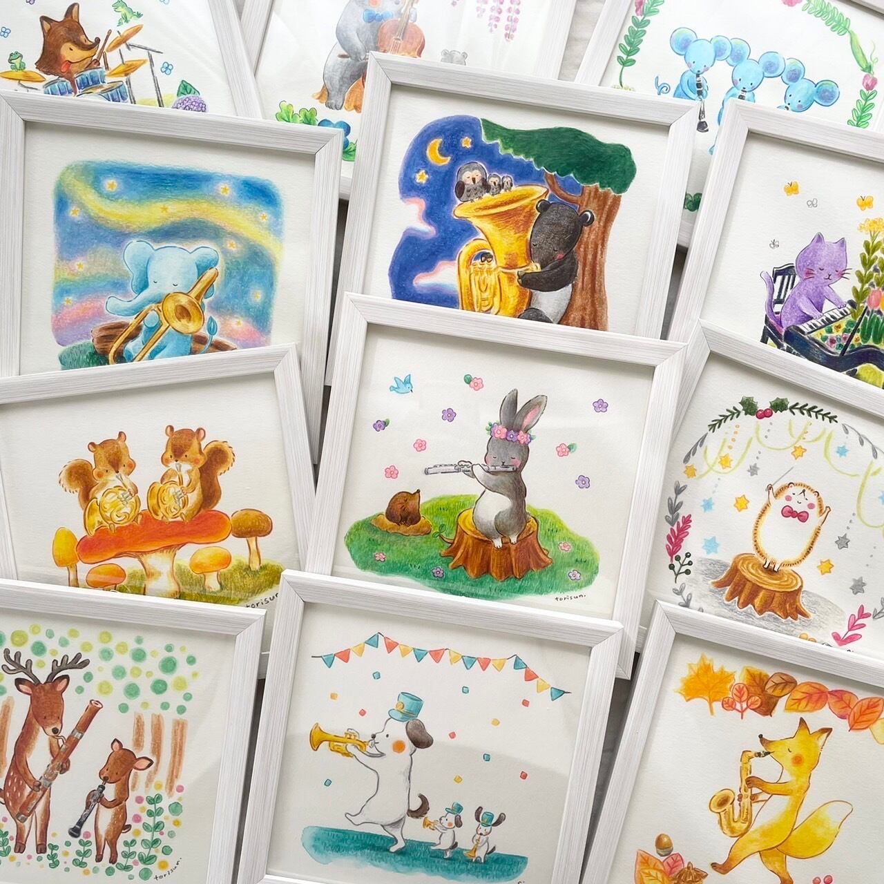 全部で12枚の音楽会などうぶつたち連作です。