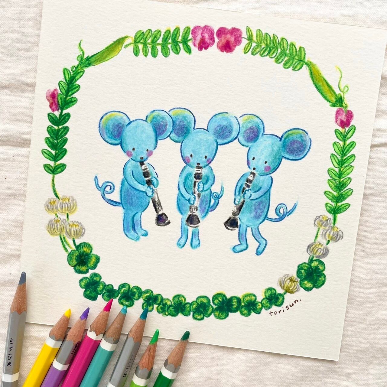 クラリネットトリオなネズミさんの原画です。