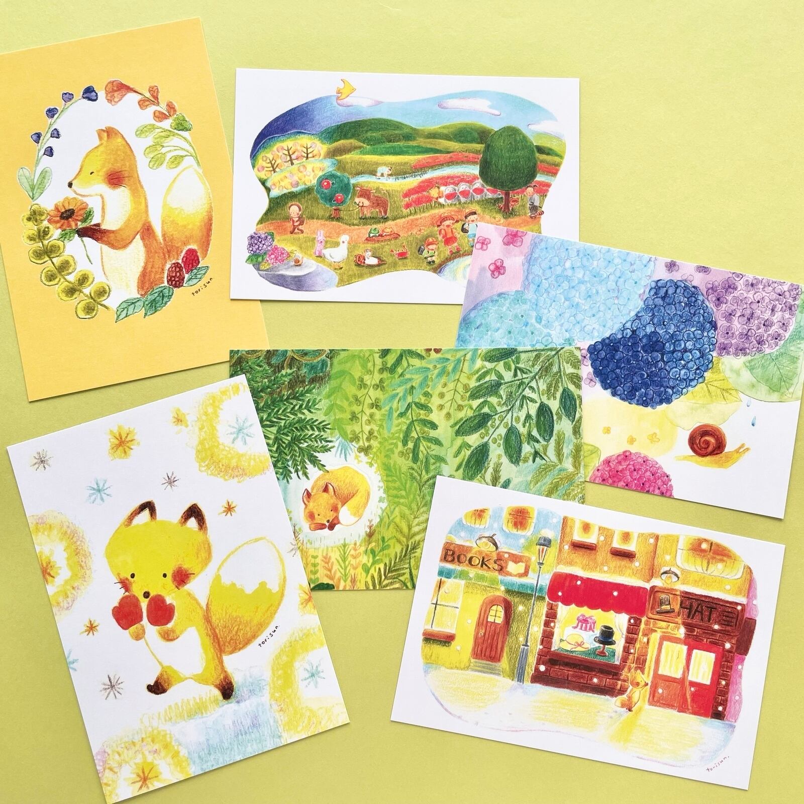 6枚全て同じ絵柄も可能です。全部『手袋を買いに(縦)』でもOK。