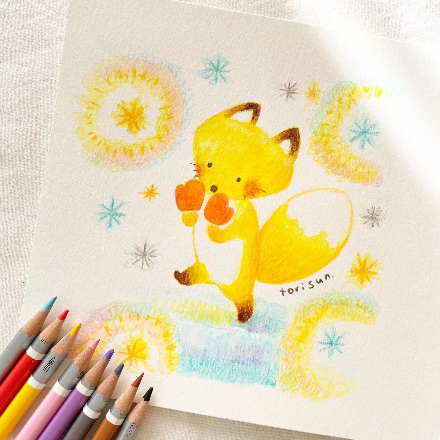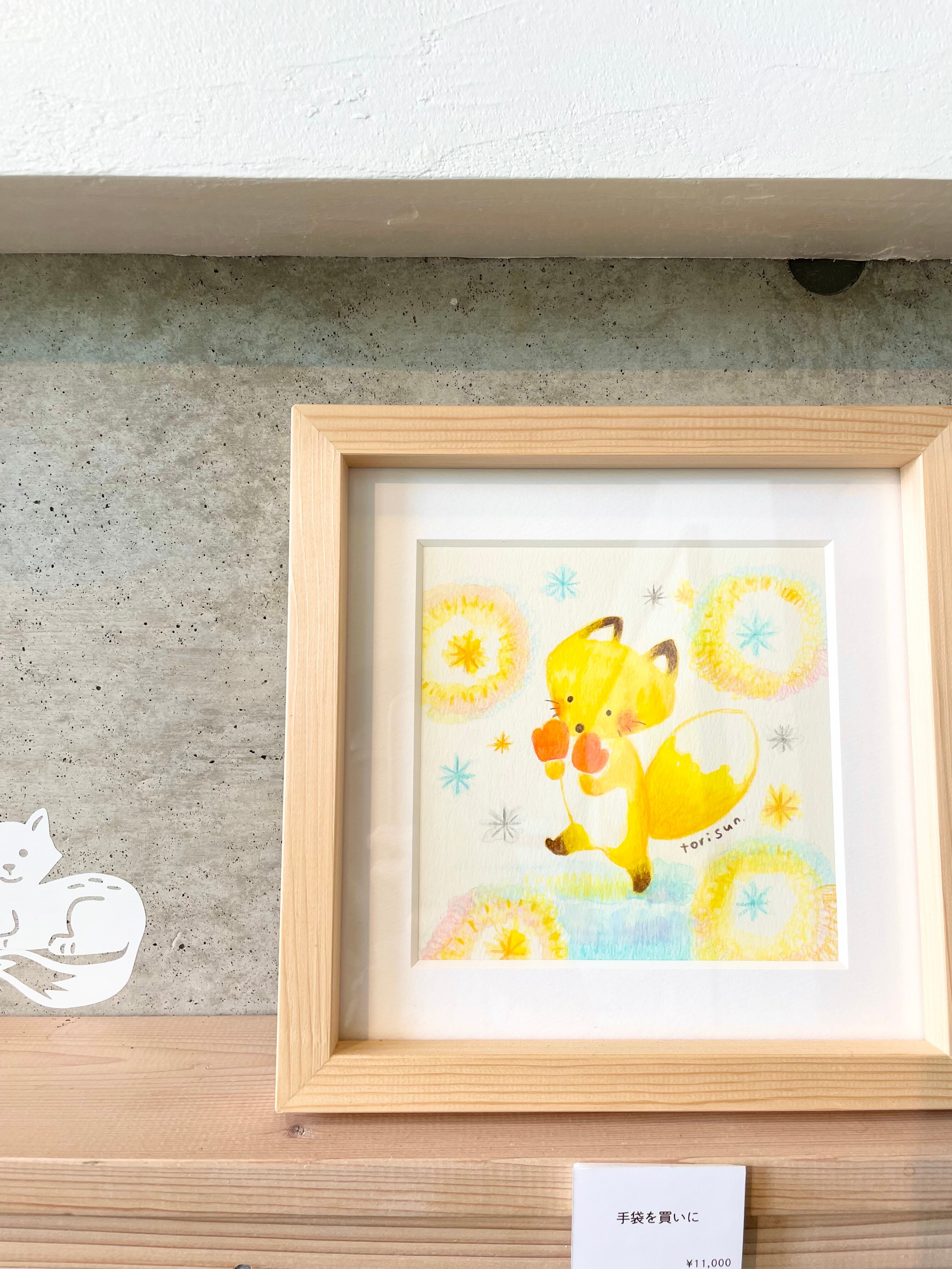 童話作家 新美南吉の『手袋を買いに』をイメージして描きました。赤い手袋が寒い季節もほっこり暖かにしてくれます。