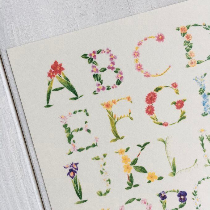 お花で描いたアルファベットのABCポストカード2枚組です。