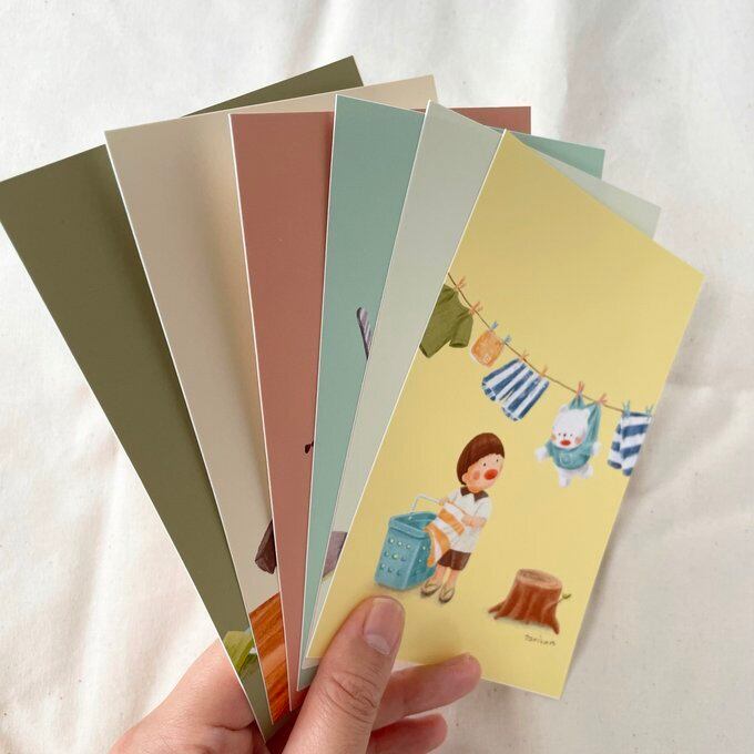男の子と女の子とどうぶつたちの暮らしを切り抜いたポストカードのセットです。