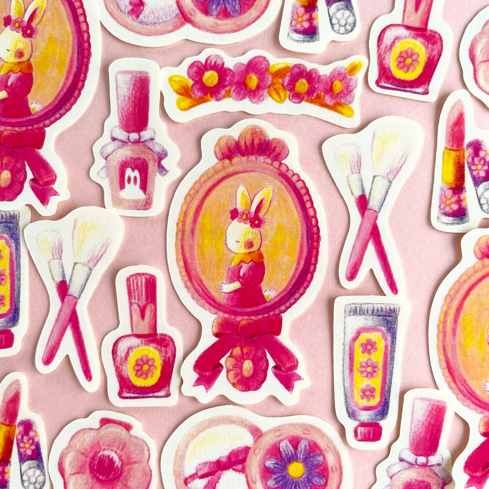 お花モチーフの可愛い化粧品を詰め合わせた