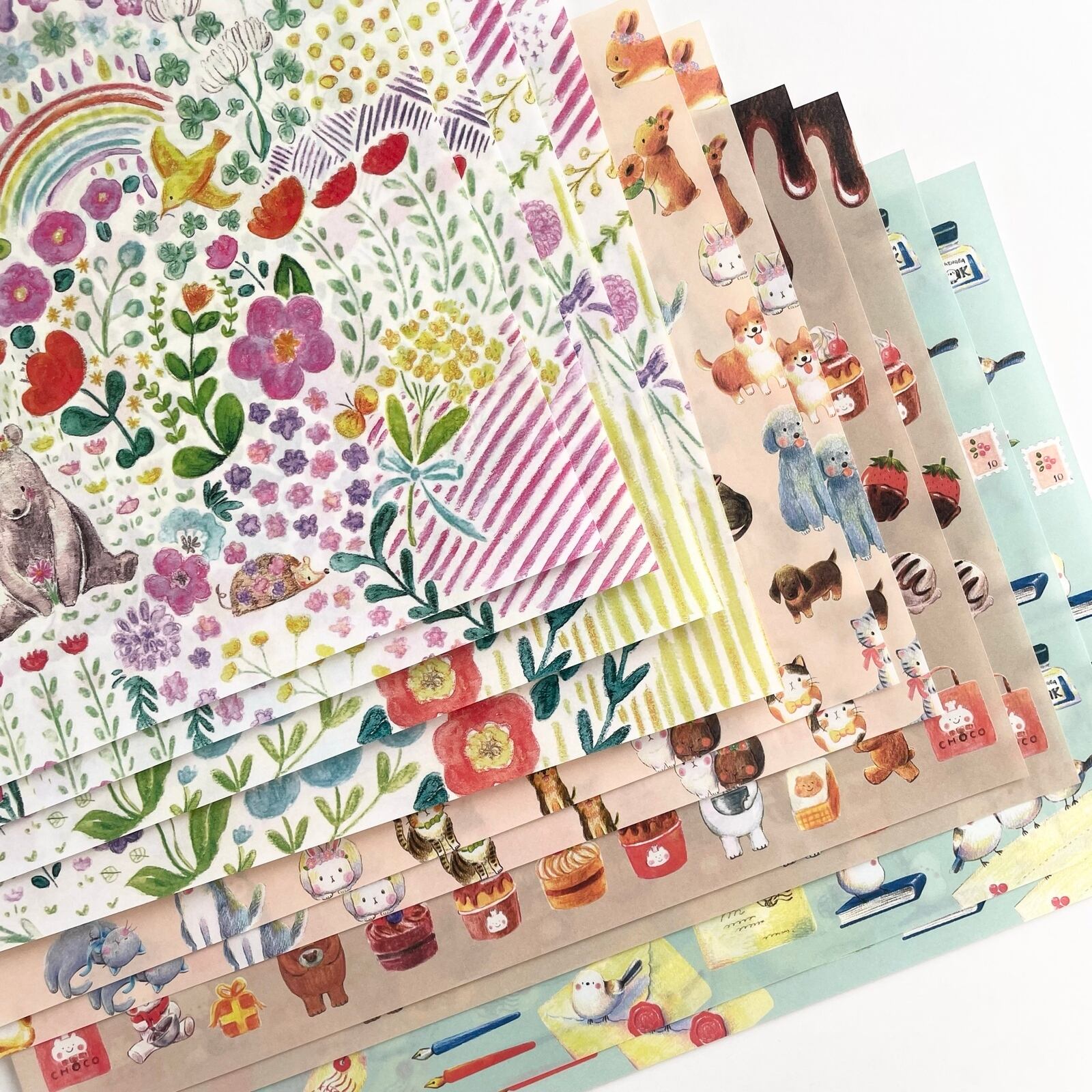 ※花畑のかくれんぼどうぶつ以外はA4サイズの包装紙となります。ハガキサイズ以上の大きな作品の場合